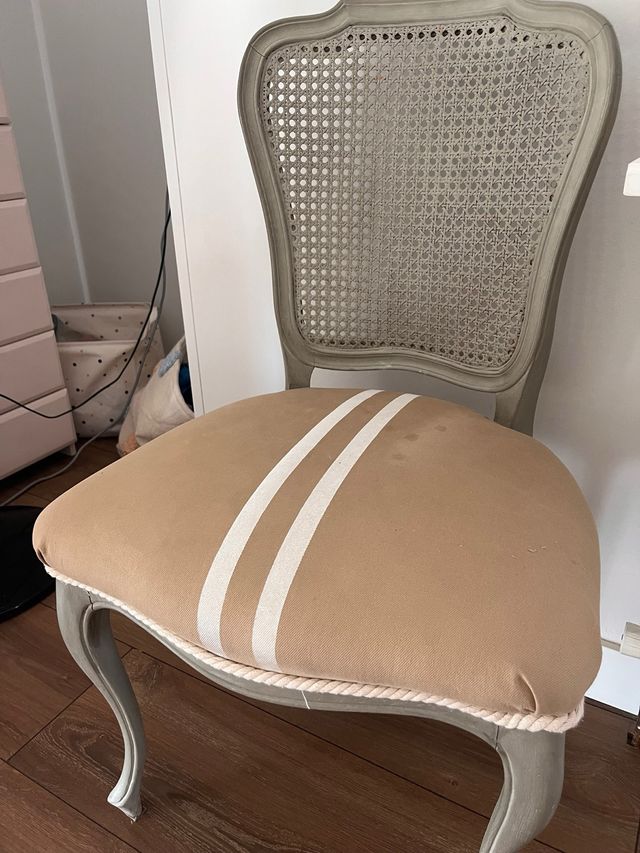 Silla vintage restaurada - beige y gris
