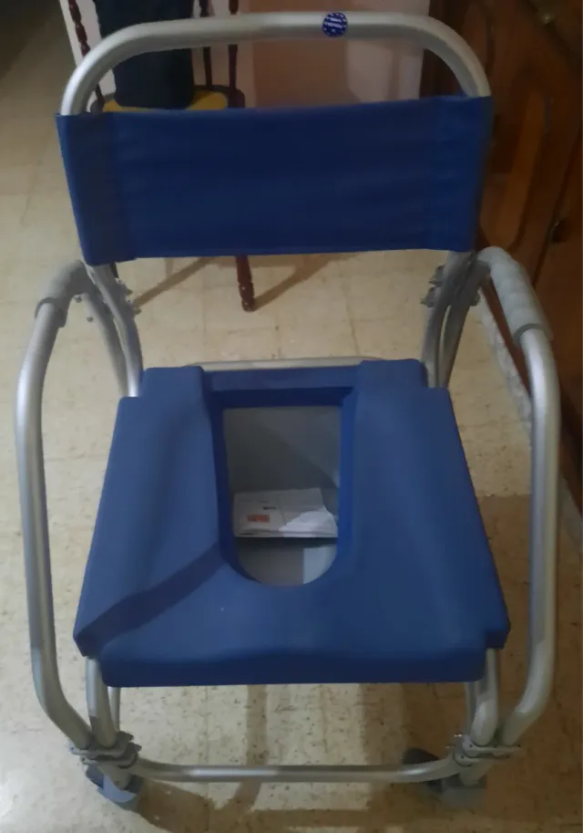 Silla WC azul y plateada