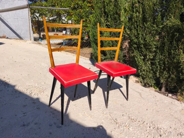 Sillas de madera rojas
