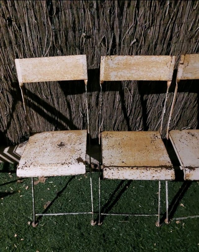 4 sillas hierro plegables. Las 4 por 120. sillas vintage, años 60, años 70, sillas hierro, sillas plegables, sillas hierro plegables.
