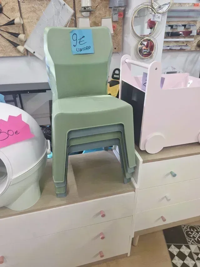 Horario: Lun-Vier 10h-14h 15h-19h JUEVES CERRADO Sillas infantiles de resina . Resistente y estables , Faciles de limpiar ideal paralos peques y su cratividad.