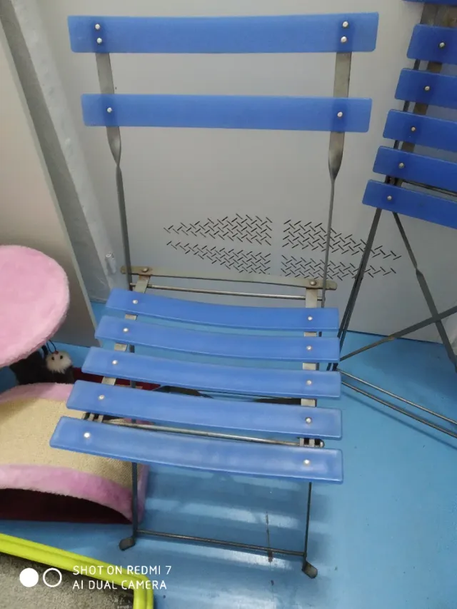 Sillas plegables azules y plateadas