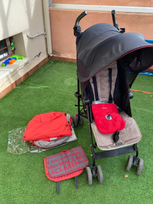Detalles del productoSilleta de paseo McLaren en color negro y beige. Incluye accesorios.
