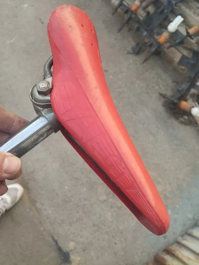 Sillín de bicicleta BMX de color rojo. - Diseño deportivo. - Grabado de marca en relieve.antiguo vintage bici cross