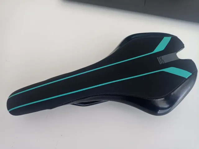 Detalles del productoSillín de bicicleta marca Bianchi, modelo Selle Royal. Diseño moderno en color negro con detalles en turquesa.