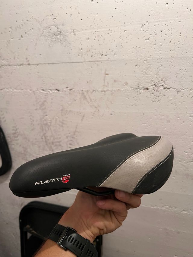 Sillín de bicicleta Aileron, cómodo y en buen estado. - Diseño ergonómico para mayor comodidad. - Color negro y gris. - Marca Aileron.