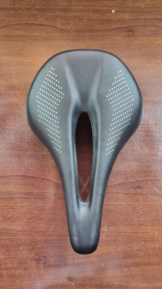 Detalles del productoSillín de bicicleta de montaña, ideal para rutas largas. Es negro y tiene un diseño elegante.
