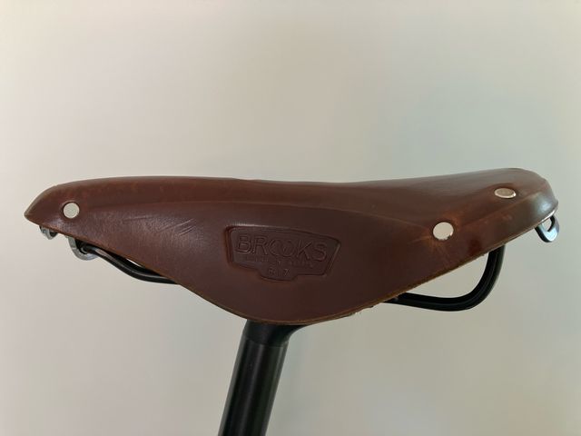 Sillín de cuero Brooks B17 en color marrón. - Diseño clásico y duradero. - Ideal para bicicletas de paseo y touring. - Logo de Brooks grabado.