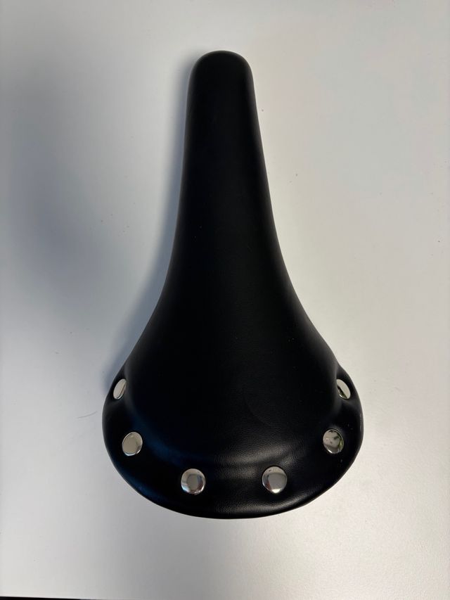 Sillín de bicicleta de estilo clásico como nuevo, muy poco uso. Color negro y remaches metálicos. - Diseño vintage. - Acabado en cuero sintético.