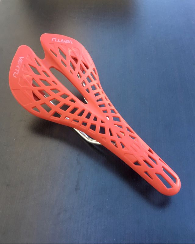 Detalles del productoSillín de bicicleta de la marca VERTU en color rojo.