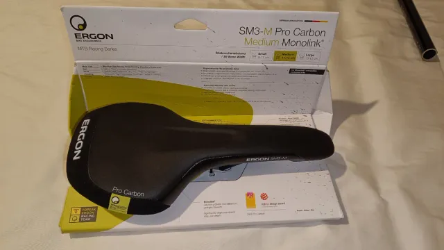 Detalles del productoSillín Ergon SM3-M Pro Carbon para MTB, serie Racing.