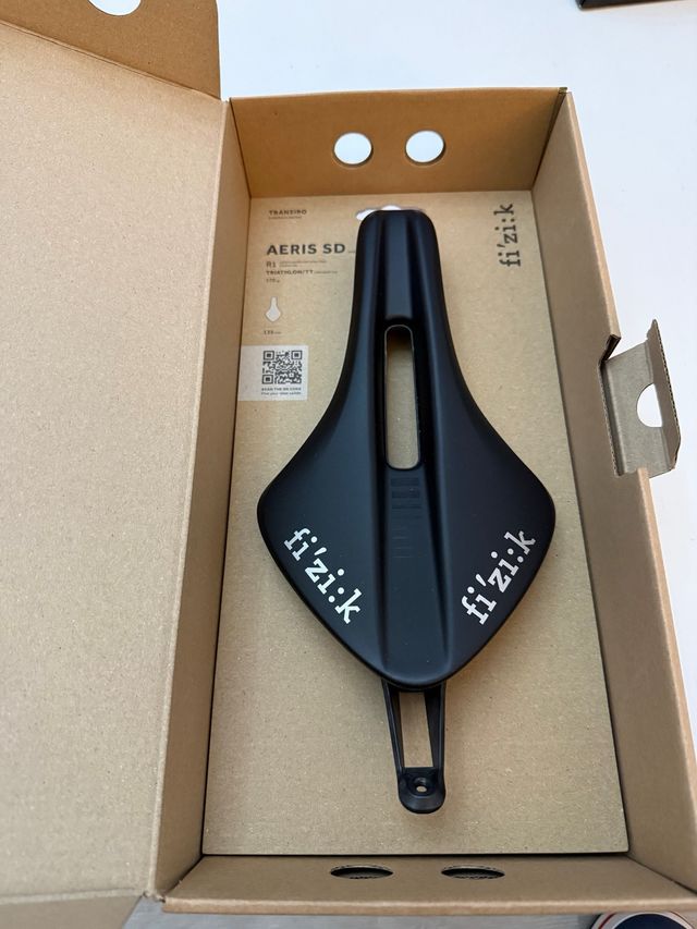 Detalles del productoSillín Fizik Aeris SD R1 de carbono, diseñado para triatlón y contrarreloj (TT).