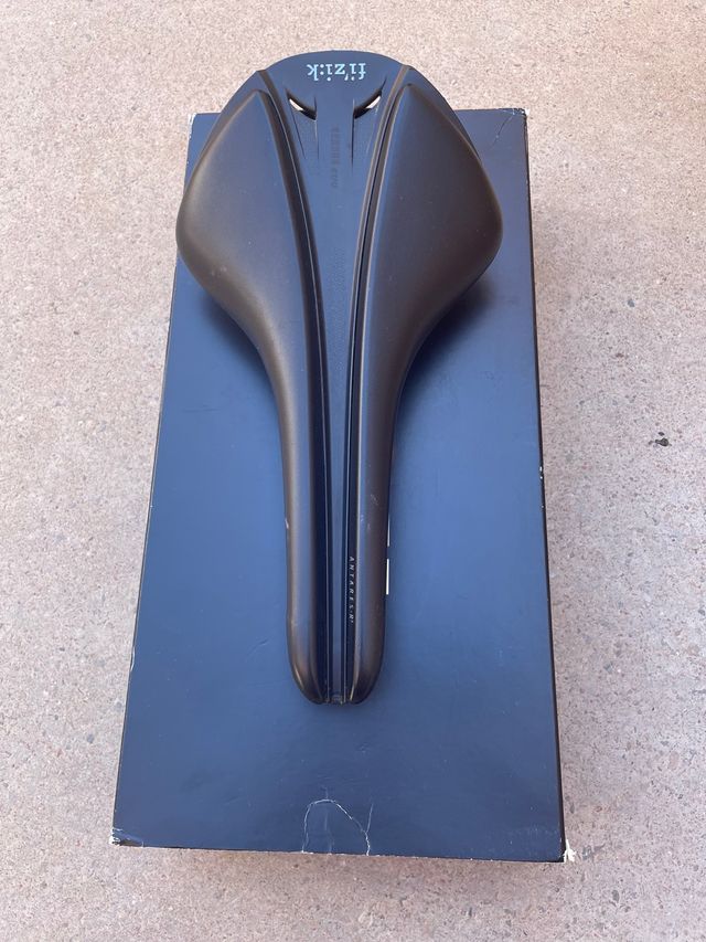Sillín de bicicleta Fizik Antares 00, prácticamente nuevo. Es negro y tiene un diseño elegante y deportivo. - Modelo: Antares 00 - Marca: Fizik - Color: Negro