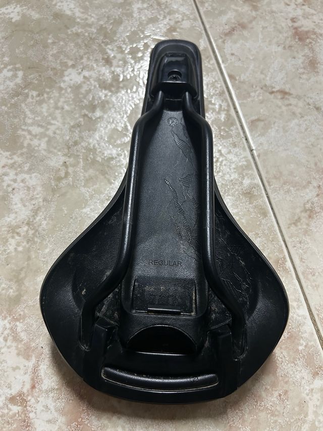 Sillín de bicicleta Fizik en color negro, modelo Regular. - Diseño ergonómico. - Base de plástico resistente.