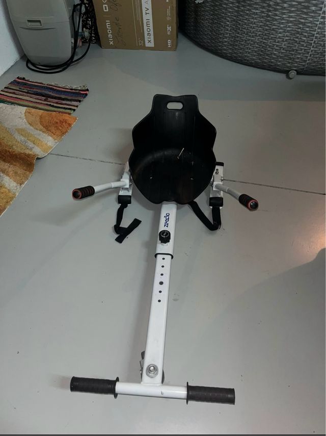 Accesorio para hoverboard, permite convertirlo en un kart. - Asiento negro. - Estructura blanca. - Manillar ajustable.