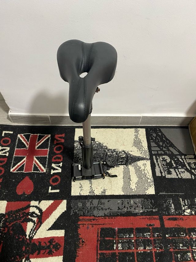 Sillín negro para patinete, con un diseño ergonómico y cómodo. - Material: Cuero sintético. - Color: Negro. - Ajustable en altura.