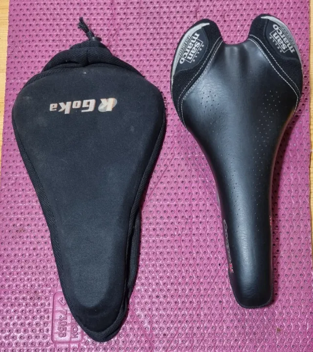 Se vende sillín de bicicleta San Marco junto con una funda protectora Goka. - Sillín de ciclismo. - Funda de sillín negra.
