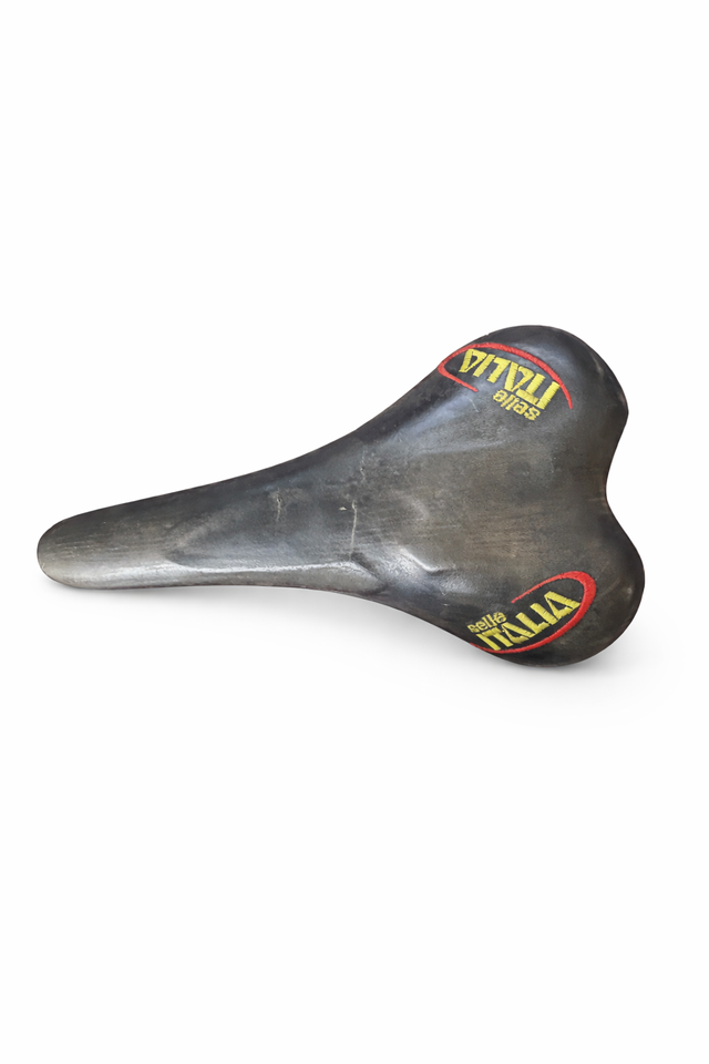 Sillín de bicicleta de la marca Selle Italia. - Diseño ergonómico. - Logotipo de Selle Italia en amarillo y rojo.