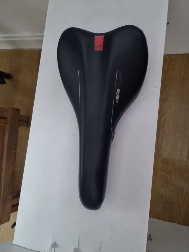 Sillín de bicicleta Selle Royal SR. - Diseño ergonómico. - Color negro con detalles rojos.