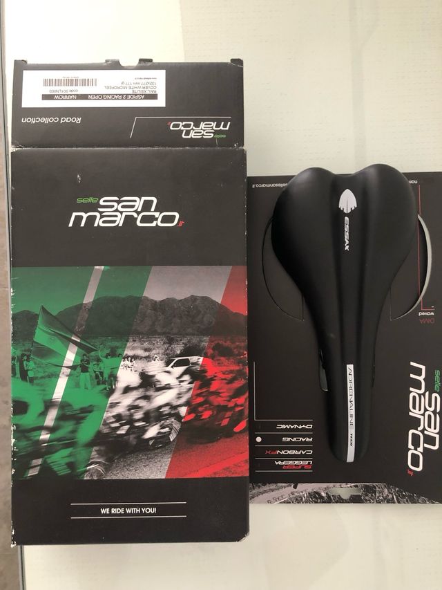 Sillín de bicicleta Selle San Marco Aspide Racing Open Narrow. - Cubierta Microfeel. - Raíles X-Silite. - Color: Negro.