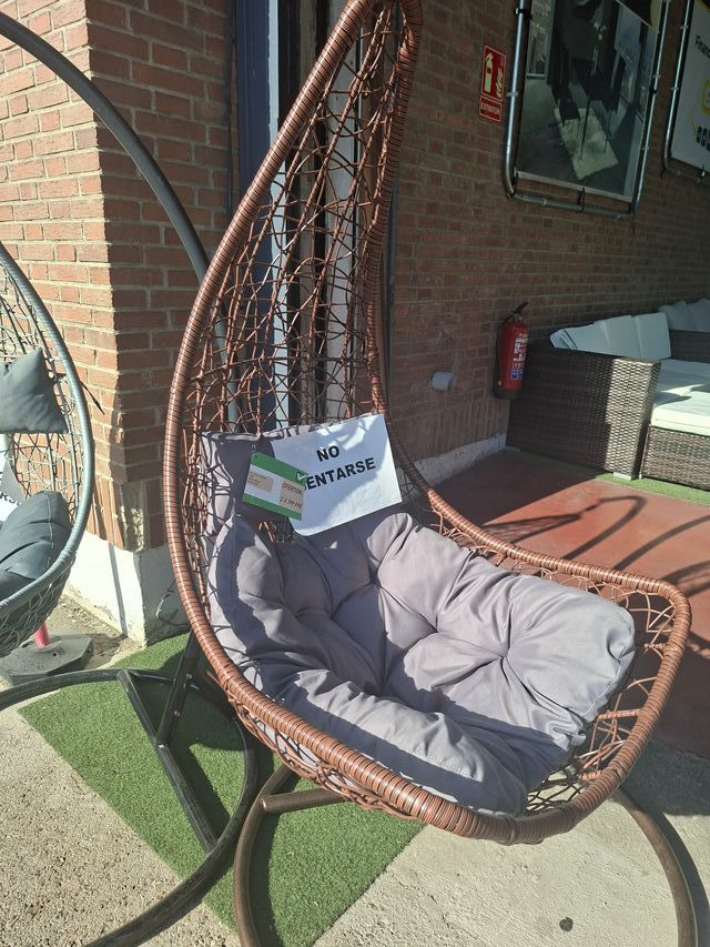 Sillón Colgante Cesta Mimbre Cojín Gris
