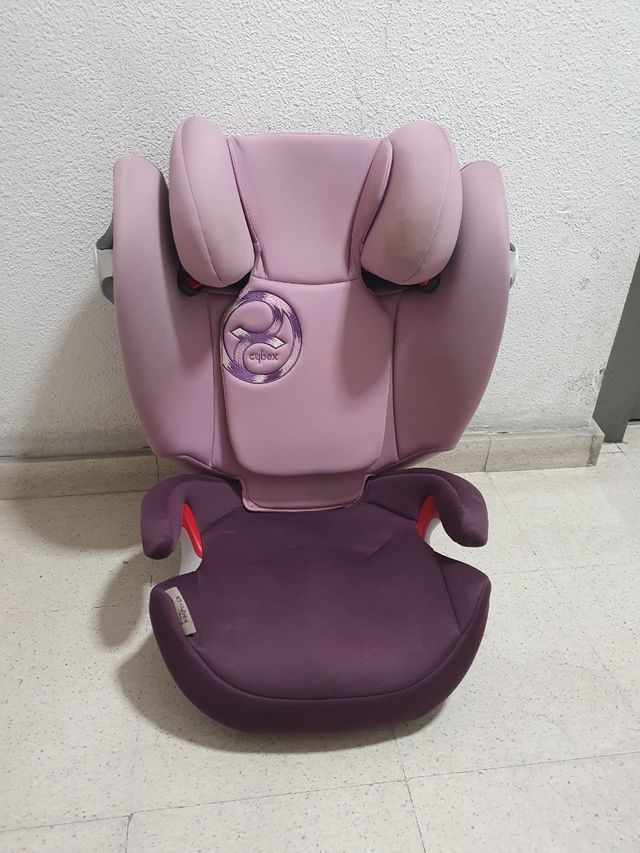 Detalles del productoSillón de auto Cybex en color rosa y morado, con sistema de anclaje Isofix.