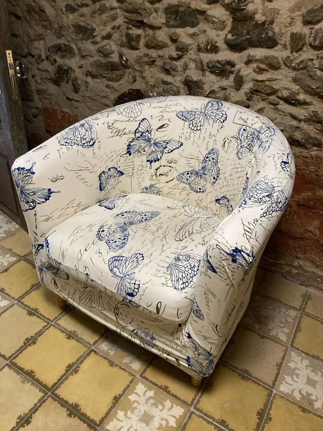 En condiciones aceptables · Azul y Blanco · Tela y Madera