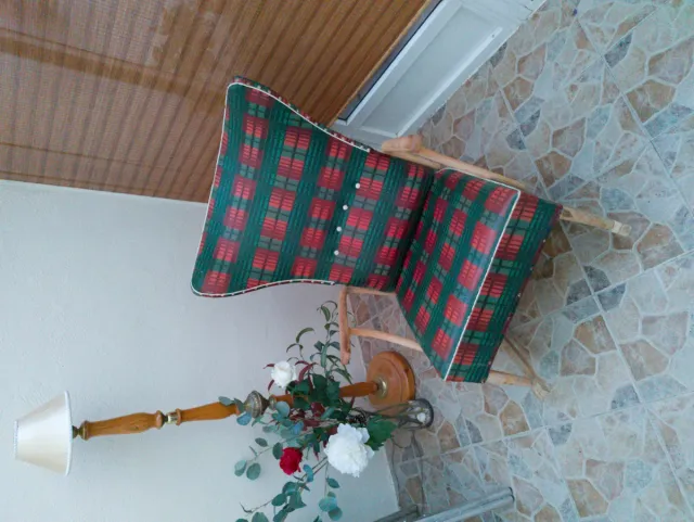Sillón de tela y madera a cuadros