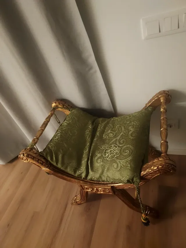 Como nuevo · Dorado y Verde · Tela y Madera