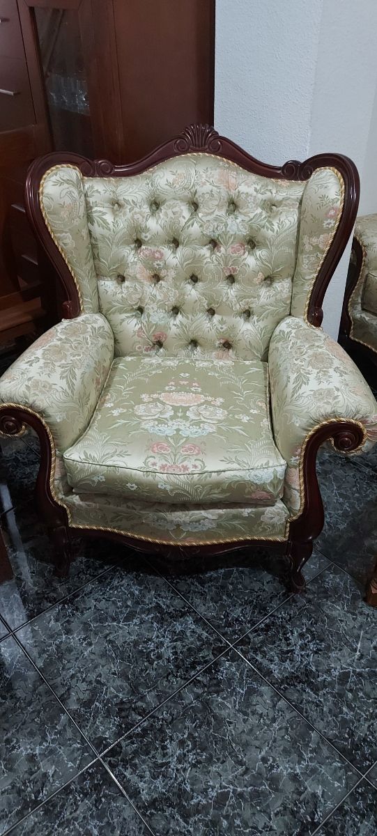 Como nuevo · Diseño de tapicería exclusivo · Marrón y Verde · Tela y Madera