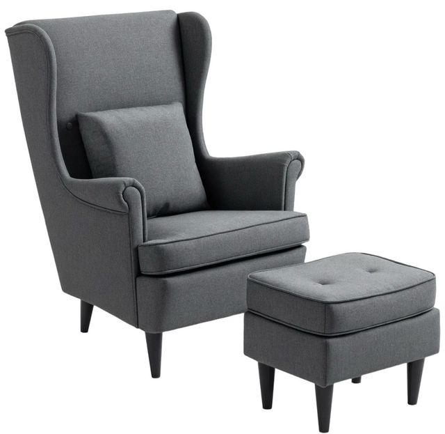 Sillón gris de tela con otomana