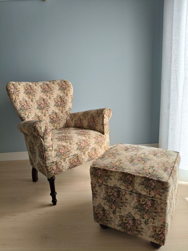 Como nuevo · Beige y Multicolor · Tela y Madera