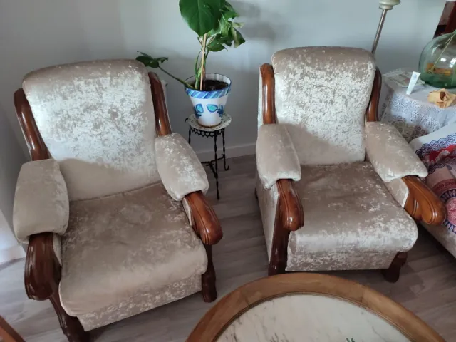 Buen estado · Beige y Marrón · Terciopelo y Madera