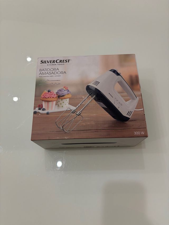 Batidora amasadora SilverCrest, ideal para mezclar, batir y amasar. - Potencia de 300W. - Diseño en color blanco y negro.