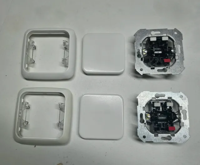Dos mecanismos completos de interruptor conmutador, tal y como se ven en las fotos.