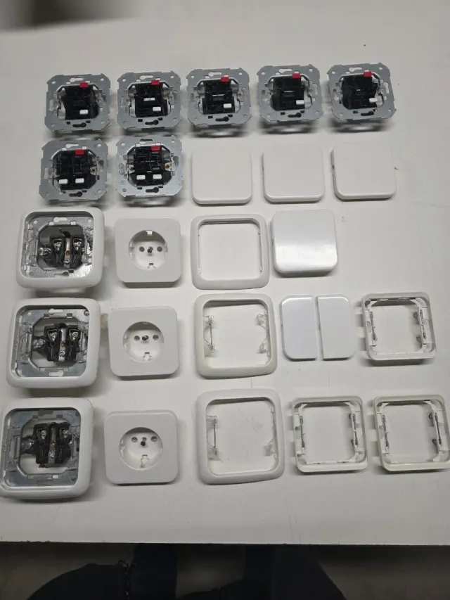Detalles del productoLote de mecanismos y marcos eléctricos de la marca Simón. Piezas de recambio o para instalaciones nuevas.