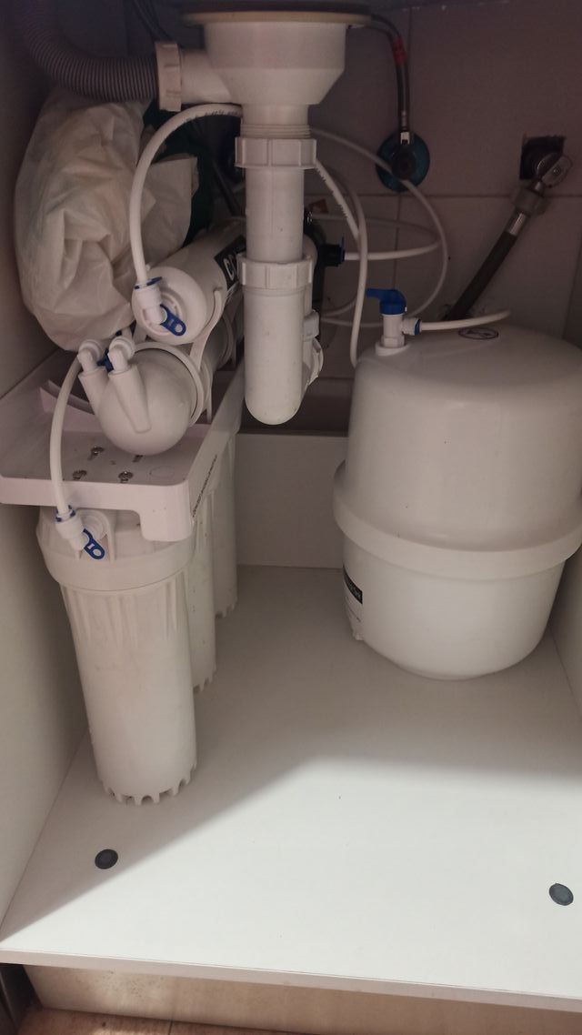Sistema de ósmosis inversa completo para el hogar. - Incluye depósito de almacenamiento. - Múltiples etapas de filtración. - Conexiones rápidas.