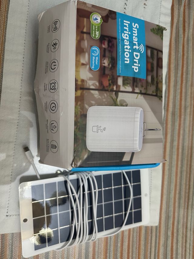 Detalles del productoSistema de riego inteligente para el control de tus plantas a través de WiFi. Incluye placa solar para su alimentación.