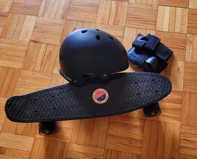 Detalles del productoVendo patinete, casco y protecciones para principiantes. El patinete está en buenas condiciones, ideal para iniciarse. Luces en las ruedas al movimiento.
