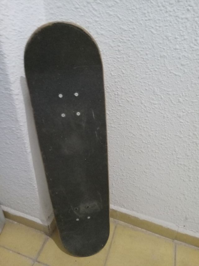Oxelo skateboard - Superficie con lija. - Agujeros para tornillos de las ruedas.