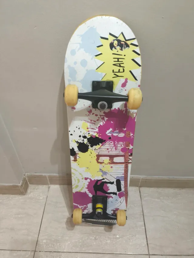 Skate Kinskate 69x20 cm. Monopatin de 7 capas de madera de arce con rodamientos ABEC- 7. - Ruedas de color amarillo. - Ejes negros.