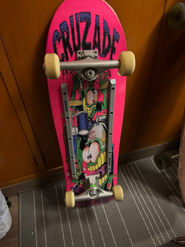 Skate Cruzade old skool + agarraderas Santa Cruz casi nuevo, dos usos, las marcas que tienen son de toques con las ruedas y alguna rallada por encima en la punta y la cola.