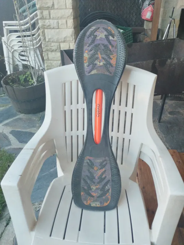 Skate de dos ruedas con diseño deportivo. - Plataforma con agarre. - Ruedas de color naranja. - Diseño en gris y morado.
