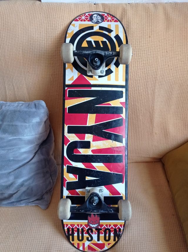 Skate marca Element con un ancho de 8,25 pulgadas. - Diseño gráfico llamativo en la parte inferior. - Trucks negros Tensor - Ruedas blancas.