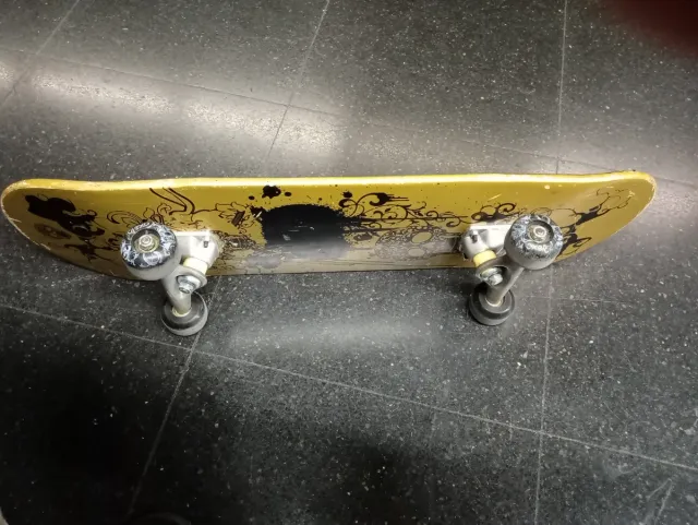 Skate longboard de 60cm con un diseño llamativo en color amarillo y negro. - Tabla con diseño gráfico. - Ruedas y ejes incluidos.