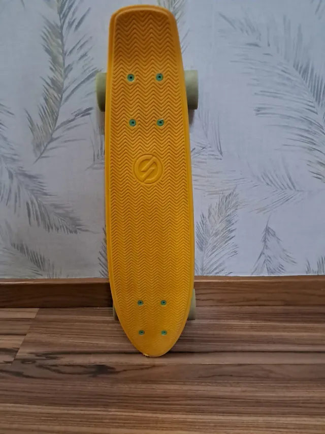 Monopatín de la marca Oxelo en color amarillo. - Diseño con textura antideslizante. - Ruedas de color claro. - Logo de la marca en relieve.