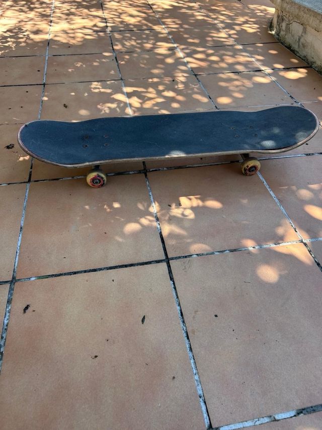 Tabla de skate Oxelo usada, en buen estado. - Marca: Oxelo - Diseño: Color negro con detalles en blanco y naranja. - Ligero desgaste por uso.