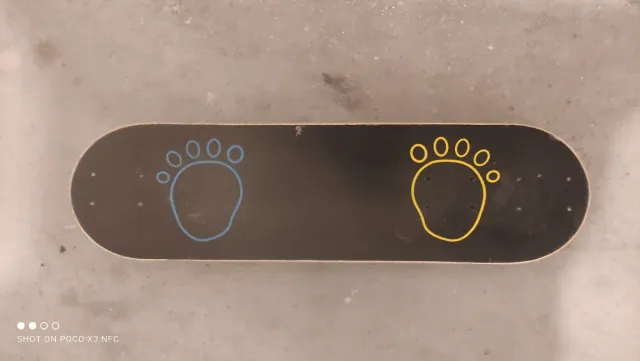 Skate infantil con un diseño divertido de huellas. - Diseño de huellas en color azul. - Diseño de huellas en color amarillo.