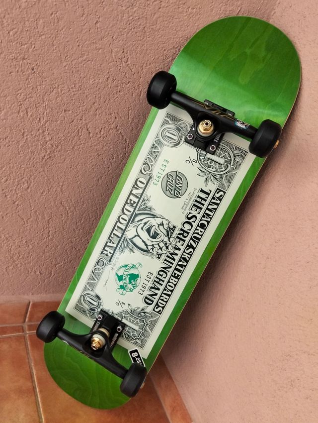 .Tabla/deck Santa Cruz Dollar Hand 8.25" Green. Pro. montada con lija MOB-grip.