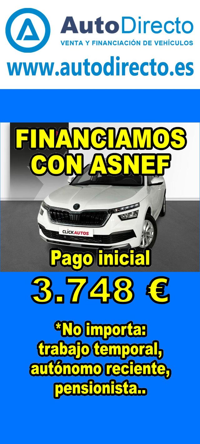 Detalles del producto¿No consigues financiación? ¡Tenemos la solución! *************************************************************************** RENT CREDIT: Aprobamos más del 90% de las operaciones. No importa ASNEF o RAI, impagos pendientes, ser autónomo o empresa reciente, ser pensionista. Imprescindible pago inicial del 20%. Ejemplo de operación: SKODA KAMIQ 1.0 TSI 95CV AMBITION. Ref. W959359MFT - Precio vehículo financiado: 18740 €. - Pago inicial de 3748 €. - Cuota mes desde 392 €. - Impuesto de circulación y garantía (mínimo 1 año) incluidos. *************************************************************************** ✅ Más de 3.000 COCHES Y FURGONETAS EN STOCK. ✅ HASTA 2 AÑOS DE GARANTIA. ✅ Kilómetros certificados. ✅ 17 concesionarios repartidos en toda España. ♻️ Aceptamos tu coche como parte del pago. *************************************************************************** IMPORTANTE: -. Este anuncio, no es vinculante, puede contener errores. SE MUESTRAN A TÍTULO INFORMATIVO Y NO CONTRACTUAL. -. Consultar disponibilidad del vehículo y datos exactos: fecha de matriculación, importes, etc,... *************************************************************************** Te ofrecemos distintas opciones: financiación, renting, alquiler con opción a compra, rent credit. En nuestro stock disponible encontraras: 3008 , qashqai , corolla , rav4 , sandero , Duster , yaris , 2008 , Tucson , Ibiza , 208 , Sportage , a3 , c4 , Formentor , q3 , yaris cross , 500 , c3 , arona , zs , x1 , kona , corsa , clase a , león , 308 , serie 1 , golf , focus , captur , a1 , tiguan , i20 , t roc , stonic , xc40 , civic , q5 , serie 3 , glb , 5008 , ateca , clio , kuga , c hr , i30 , arkana , juke , a4 , x3 , cx 5 , xc60 , kamiq , taigo , Mustang , x6 , polo , ceed , karoq , x2 , Astra , niro , cx 30 , a5 , cooper , megane , moka , fiesta , hs , q2 , clase c , serie 3 , renegade , picanto.